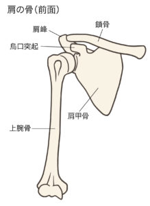 烏口突起には、小胸筋・烏口腕筋・上腕二頭筋短頭といった筋肉が付着しており、これらの筋肉の使い過ぎが炎症の主な原因となります。